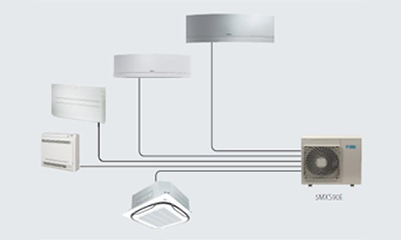 - Es können Innengeräte unterschiedlicher Designs und Leistungsklassen angeschlossen werden